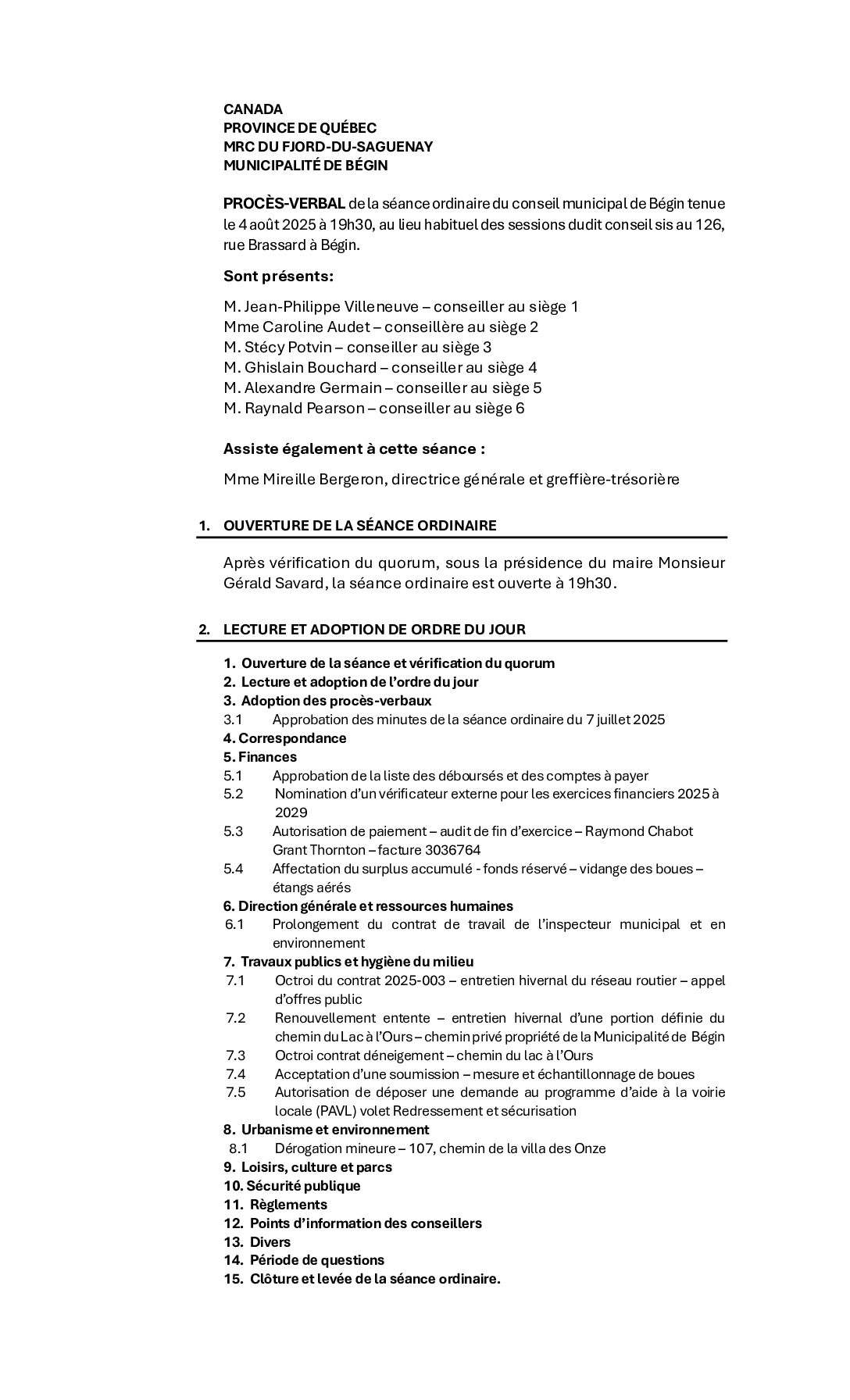 Tous droits réservés municipalité de Bégin Politique de confidentialité